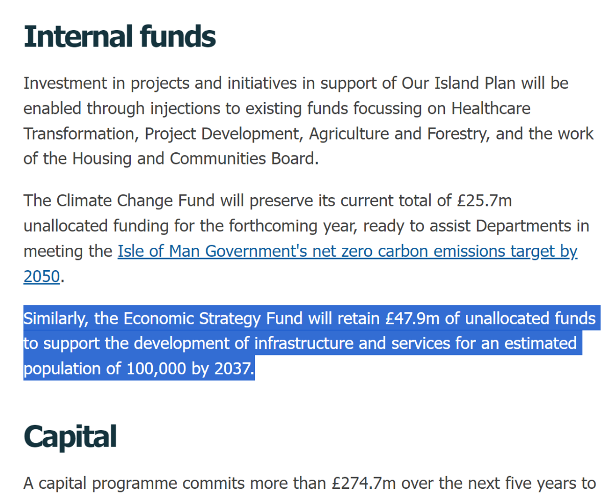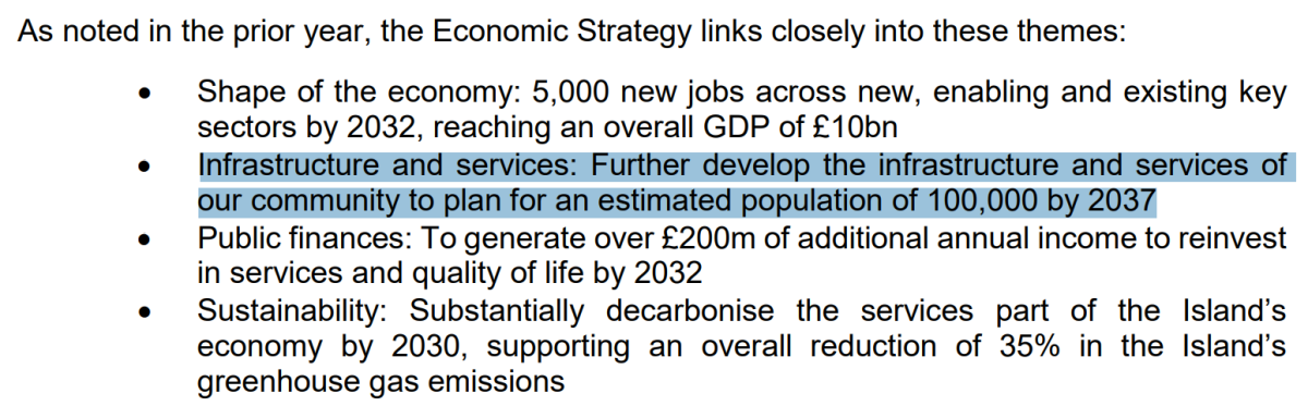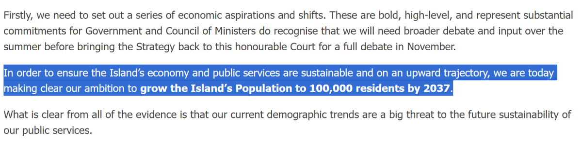 | “…we are today making clear our ambition to grow the Island’s Population to 100,000 residents by 2037.” | ![]() |